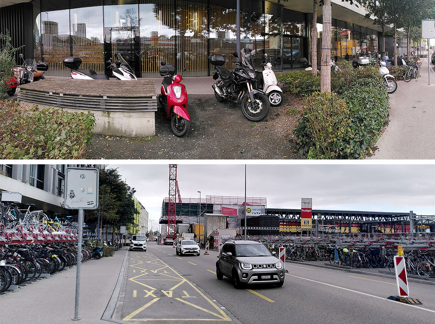 Bei der Neugestaltung des Centralbahnplatzes wurde das Queren mit Auto und Taxi verboten und Veloabstellflächen ins UG verlegt. Der Centralbahnplatz ist damit eine funktionierende Verkehrsdrehscheibe, im Sinne der Verkehrswende, in den 90er Jahren als Euroville bezeichnet, mit zeitgemässer Infrastruktur für Umsteiger vom Zug auf das Tram, auf den Bus oder auf das Velo. Ein anderes Bild zeigt sich beim Bahnhof Hinterausgang Gundeldingen. Mit den Neubauten Residenz, Meret-Oppenheim-Hochhaus etc. sind viel Raum für VeloPP vernichtet. Die vorgesehene Zahl an VeloPP in den Neubauten ist zu knapp bemessen. Gesucht sind weitere Veloabstellplätze!