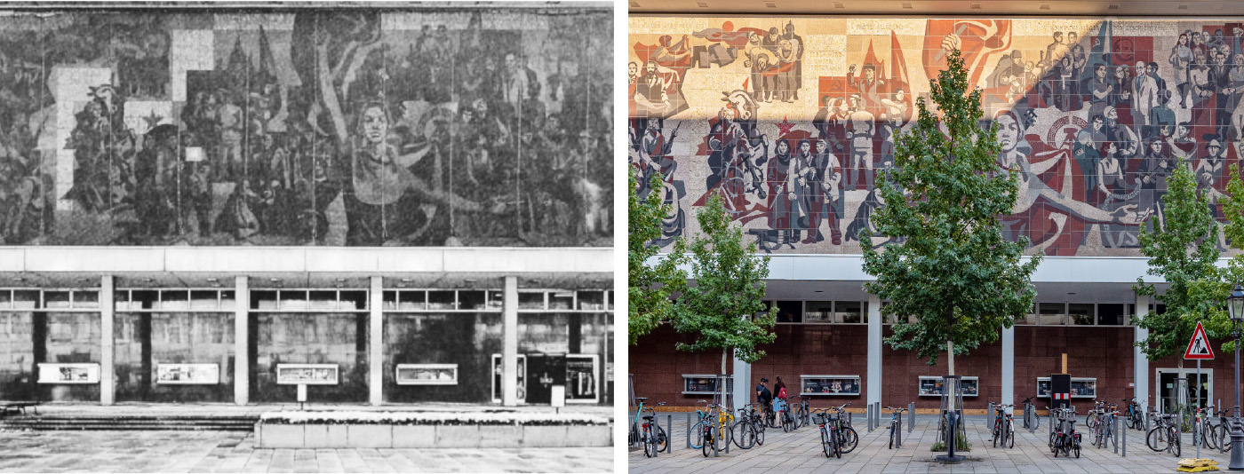 Während auf beengter Allmend die Velos im Regen stehen, lädt der Empfangsbereich mit mondäner Theater-Treppe zum Verweilen ein.