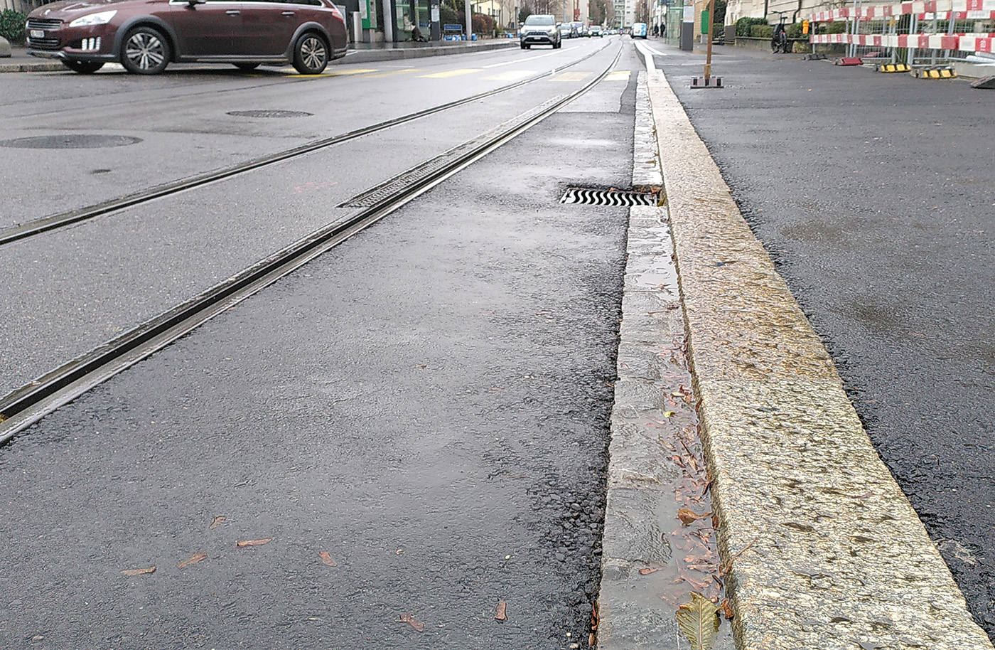 Das ASTRA hat sich dem Thema leider viel zu wenig angenommen, obwohl sich die zusätzliche Anstrengung im Umgang mit den behin.G.konf. Haltestellen oder dem Mikroklima überall dieselben sind. Das Amt für Strassen hält 2021 in einer dem Thema verwandten Studie 'Entflechtung der Veloführung in Kreuzungen' von 2022 lediglich fest: Insbesondere in Städten mit Tramverkehr sind Gleise eine grosse Herausforderung. Entsprechende Massnahmen und Richtlinien werden von den Behörden selber erarbeitet und hier nicht abgebildet. Bei verschiedenen Versuchen mit Gummiprofilen in den Schienenrillen konnten bis zur Drucklegung des Handbuchs keine praxistauglichen Lösungen gefunden werden. Quelle: astra.admin.ch