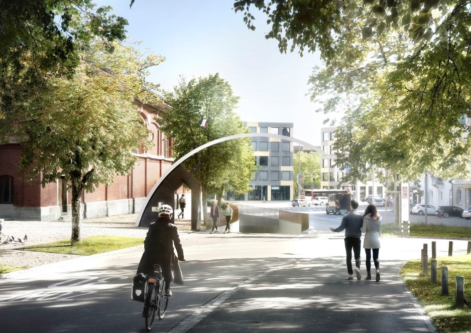 Die mehrspurige Kreuzung St. Leonhard wird täglich von etwa 2’200 Fussgängern und rund 350 Velofahrern überquert. Die Passierung dieser Kreuzung soll mit dem Bau von einem 126m langem Velo- und Fussgängertunnel in Zukunft attraktiver, sicherer und schneller werden. Quelle: geissmann-arch.ch