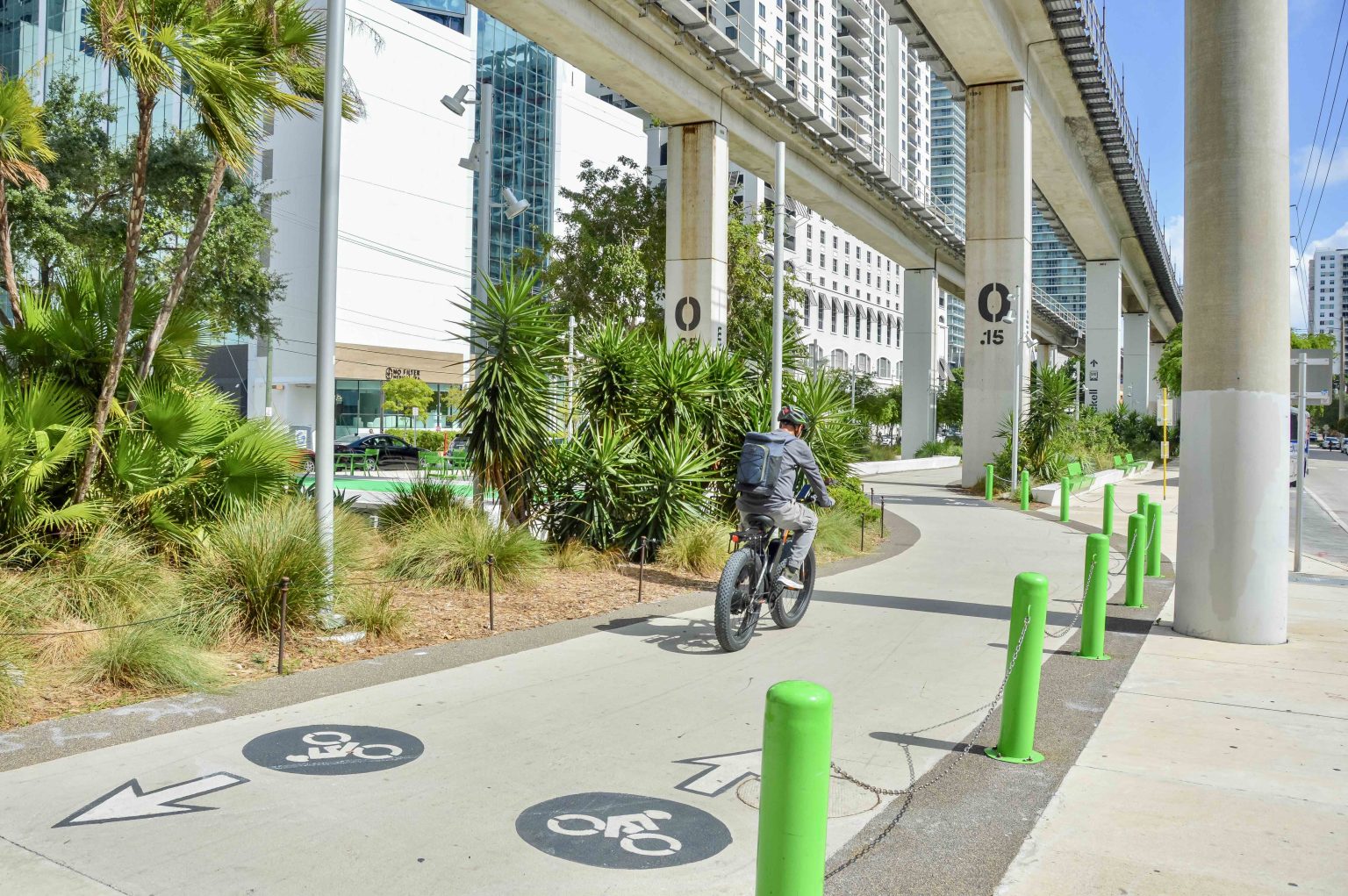 Wir sollten an dem Zubringersystem arbeiten, aber es gibt Gemeinden, die wirklich keine Radwege auf ihren Straßen haben wollen. Jetzt, wo die U-Bahn in Betrieb genommen wird, fragen sich die Leute, warum sie nicht sicher dorthin gelangen können.Es wird also eine Verzögerung geben, aber ich denke, es wird passieren, vor allem für Kinder, die zur Schule wollen.Es gibt hier eine Organisation namens BikeSafe, die einen Pop-up-Radweg in der Nähe einer Grundschule eingerichtet hat.Diese Pilotprojekte werden schließlich dauerhaft eingerichtet, und wir haben das schon früh mit der Parkverwaltung gemacht. Wir haben auch vorübergehend Fitnessgeräte aufgestellt, um zu sehen, wie sie genutzt werden, und die Leute haben sie sofort angenommen, und ehe man sich versieht, hat dieses Parklet das permanente Urban Gym in Brickell informiert. Sie werden sich der Bedeutung eines vernetzten Systems bewusst.